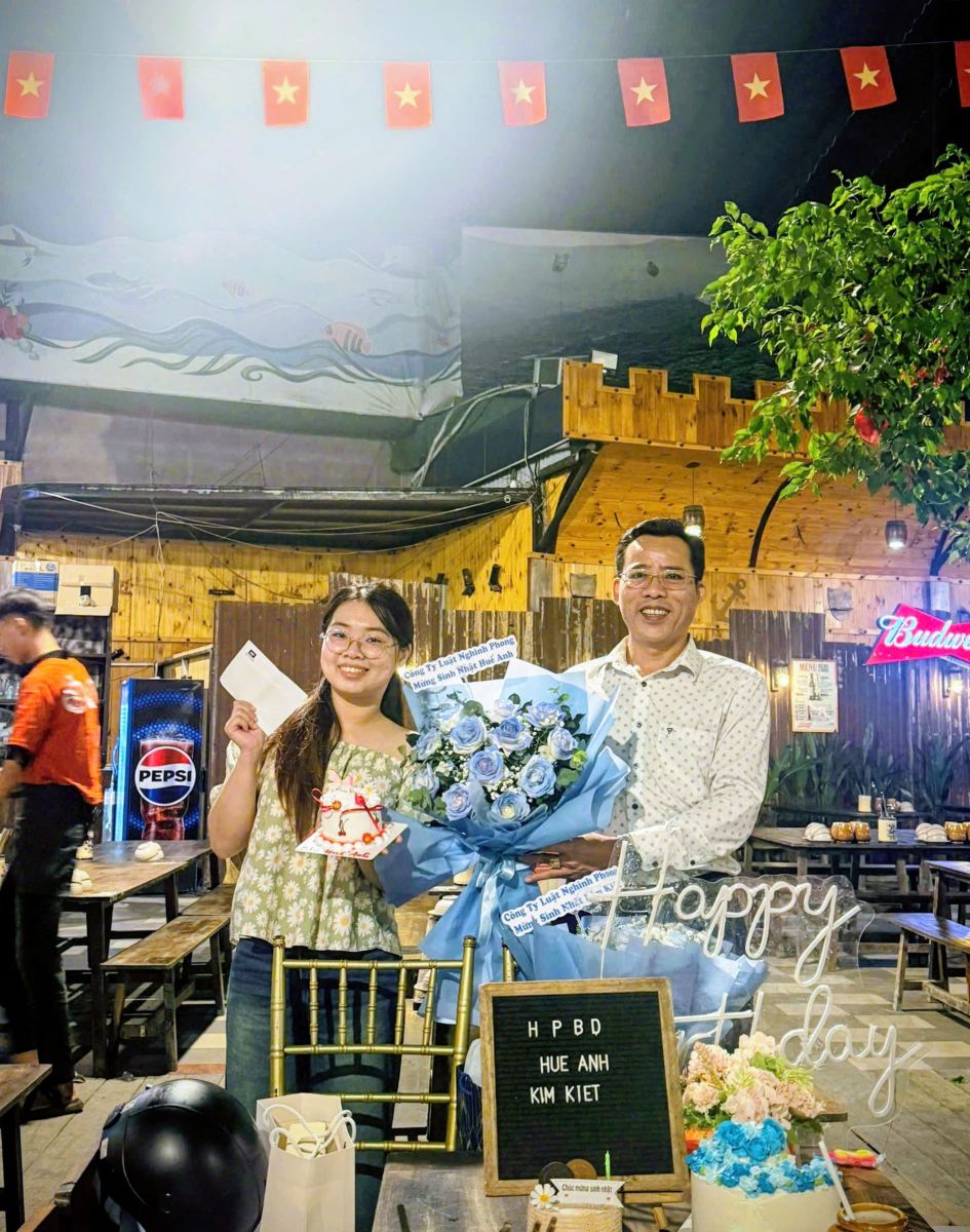 Buổi tiệc có sự hiện diện của Ban lãnh đạo Công ty Luật TNHH Nghinh Phong cùng toàn thể cán bộ nhân viên và một số khách mời thân thiết. Sự có mặt của tất cả mọi người đã góp phần tạo nên bầu không khí gắn bó, gần gũi và tràn ngập tiếng cười, mang lại niềm vui trọn vẹn cho hai nhân vật chính có ngày sinh nhật trong tháng 11 này. Đây cũng là một nét đẹp trong văn hóa doanh nghiệp Nghinh Phong, nơi mỗi thành viên không chỉ được ghi nhận qua thành tích làm việc mà còn được trân trọng trong từng cột mốc cá nhân.
